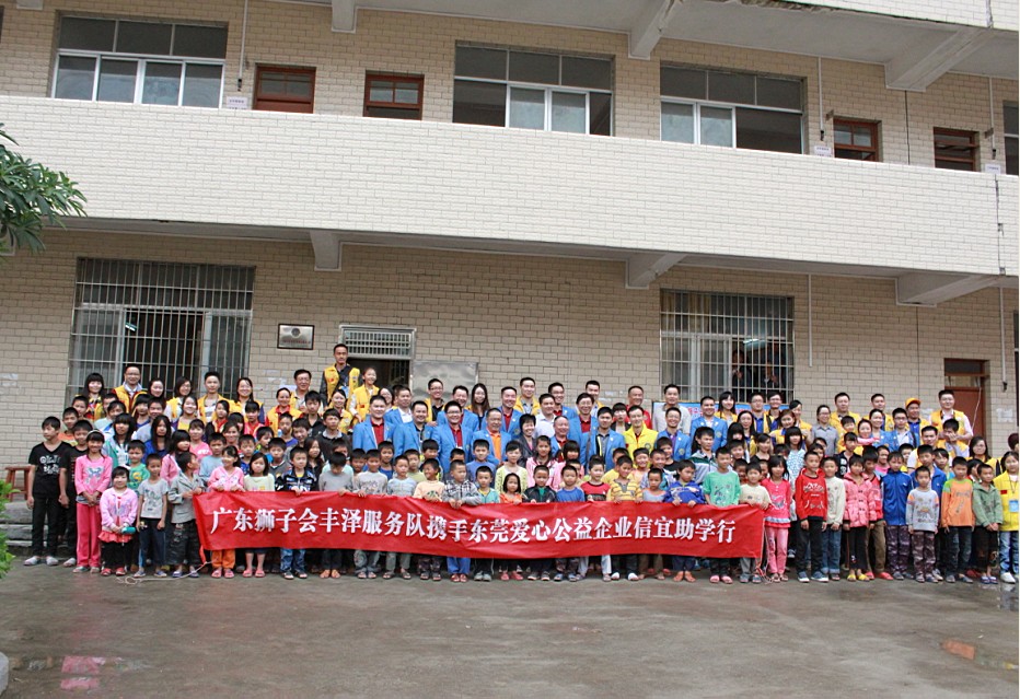 广东狮子会丰泽服务队与东莞爱心公益企业信宜助学行合影